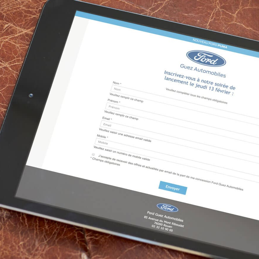 Dans le cadre d’une soirée de lancement dans sa concession de Rouen, Ford Guez Automobiles a sollicité l’agence de Digitaleo pour concevoir et router une campagne d’invitation sur sa base client.