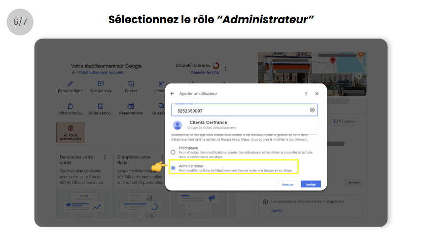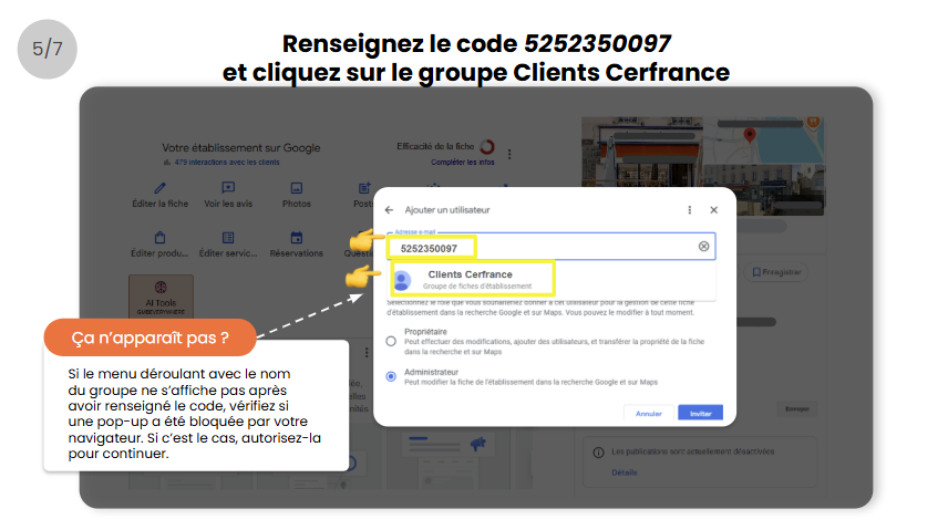 Partagez avec Clients Cerfrance la gestion de votre fiche Google.